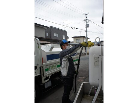 組合員さんのご自宅へ灯油をお届けするお仕事です。危険物取り扱い(丙種以上)資格が必要ですが、お持ちでない方も資格取得制度がありますので、未経験者でも大丈夫です。